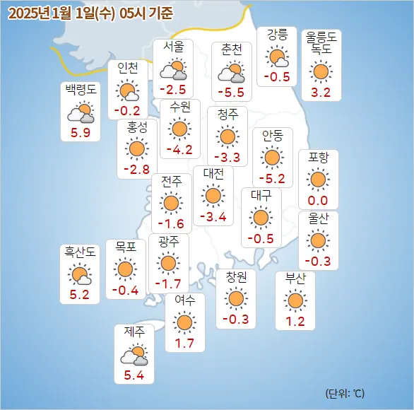 2025년 1월 1일 날씨 예보